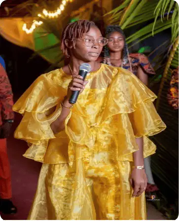 Jeune entrepreneure audacieuse, elle a fondé le snack-bar Sans Pression, symbole de persévérance et de créativité.